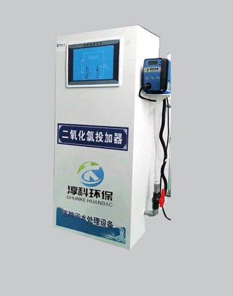 二氧化氯投加器采用計(jì)量泵將配比好的二氧化氯溶液投加到需消毒的水體中,該設(shè)備還具有運(yùn)行安全可靠、占據(jù)空間小、安裝方便、 操作管理簡(jiǎn)單、運(yùn)行費(fèi)用低等諸多優(yōu)點(diǎn),因此在水消毒領(lǐng)域中得到廣泛的應(yīng)用。